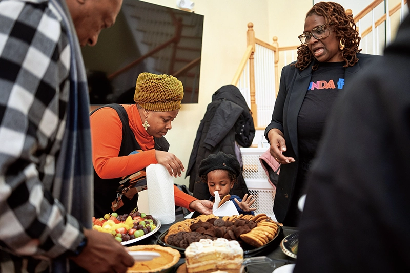 COMMUNITY FLAVORS is designed for community engagement. RIBS hosts quarterly “potlucks’ at our home at the Southside Cultural Center of RI. People are invited to come and sit at table with “strangers.” We share food, enjoy a performance, then, w/ RIBS facilitators, people share stories with each other around the table. This program was inspired by Dr. Lewis Mehl-Madrona, a Lakota/Cherokee healer who is also a Western medical doctor. RIBS invited him to come and present a workshop called “The Healing Power of Storytelling for Individuals and Community.” At the end of the day long activities, Lewis said, “if you really want your community to be well, you need to gather regularly to eat and share stories. RIBS took that to heart, and community flavors is a program that leaves people well fed in body, mind, spirit and soul.